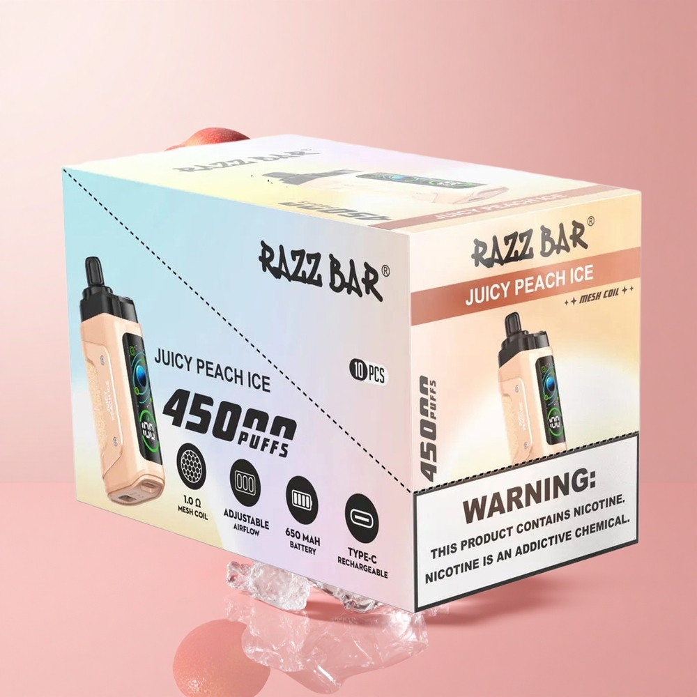 Soczysty Brzoskwiniowy Lód Razz Bar 45000 Zaciągnięć z Typem-C i Regulacją Przepływu Powietrza